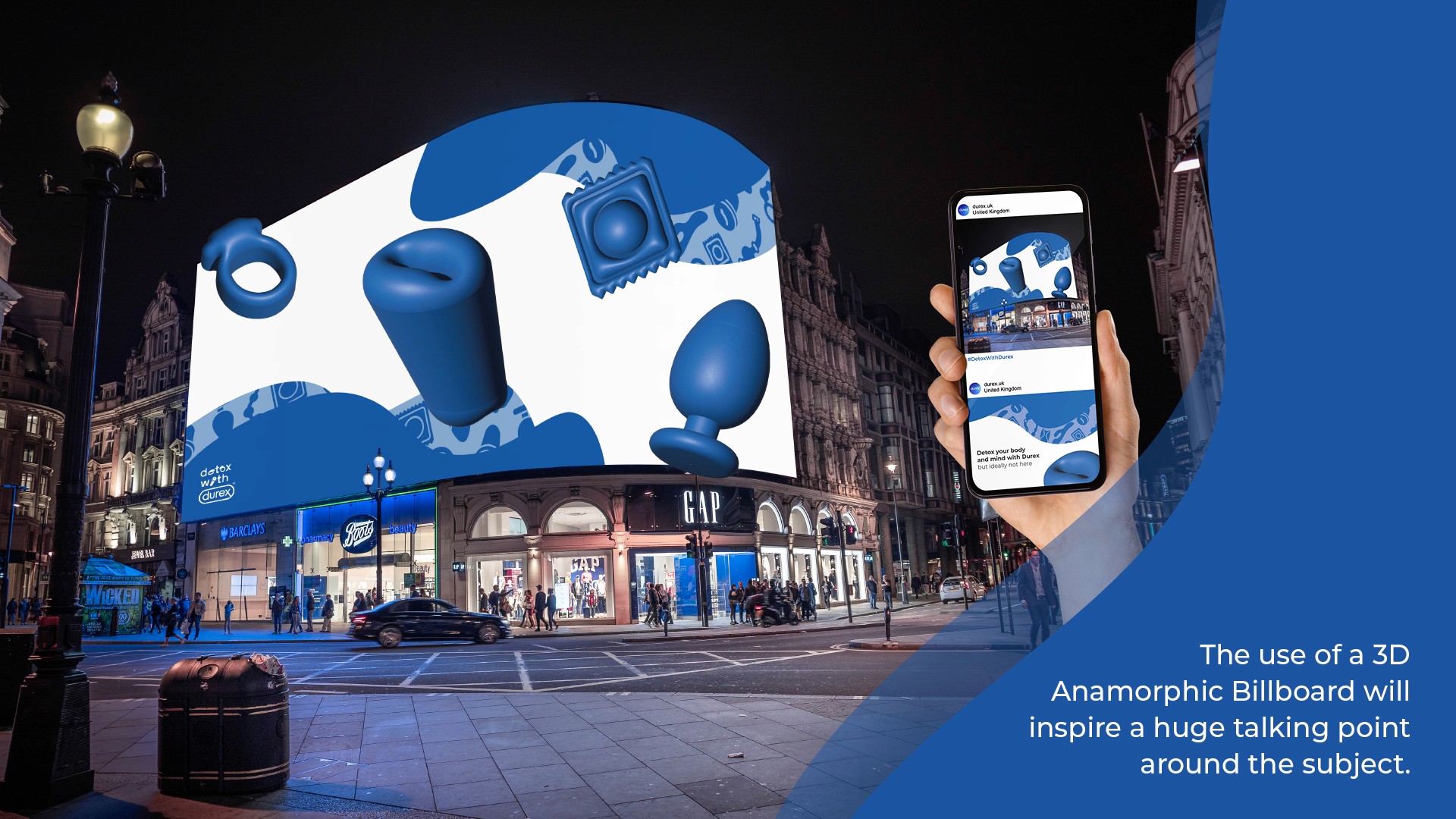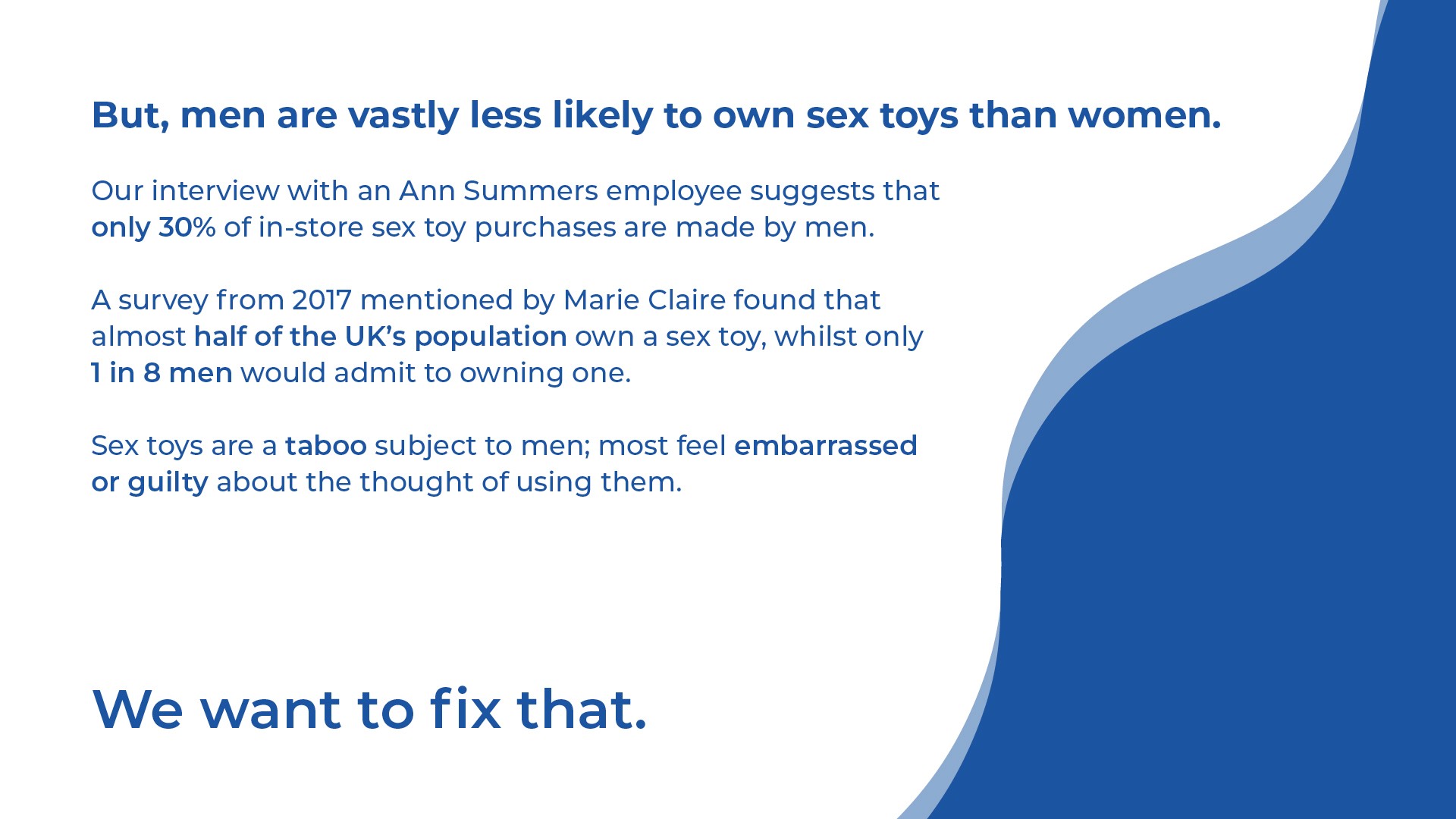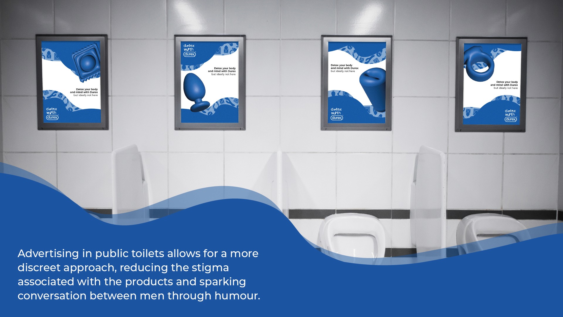 Our project aims to break down the barrier men face when it comes to sex toys. Sex toys are a normalised experience for women, yet men are ridiculed for engaging with them. Masturbating with sex toys has numerous health benefits; strengthening the pelvic floor, preventing erectile dysfunction and boosting immunity. Detox With Durex aims to normalise the use and conversation of sex toys amongst men.