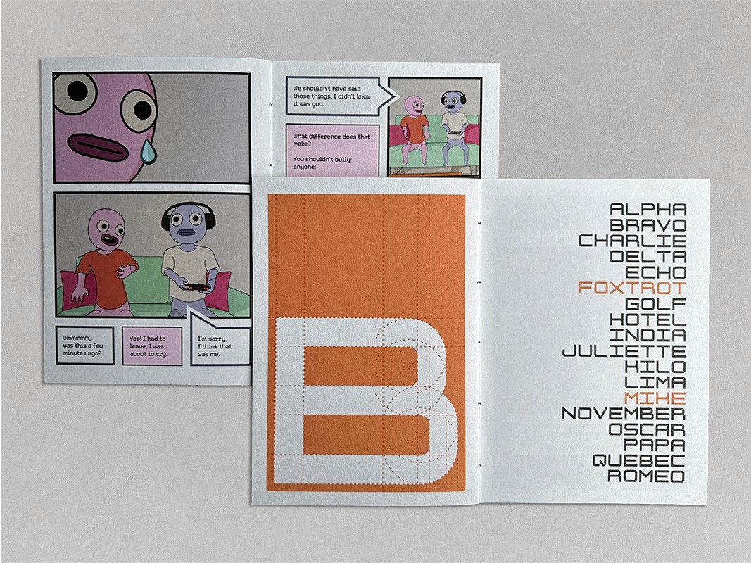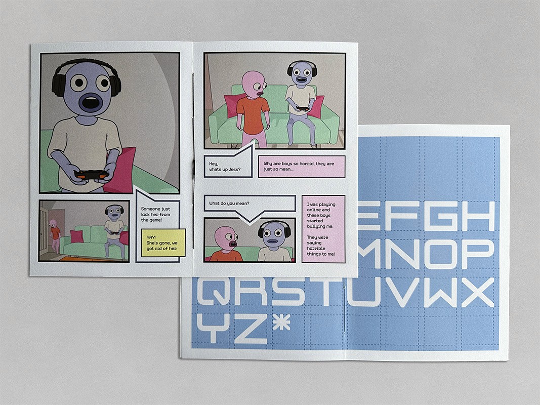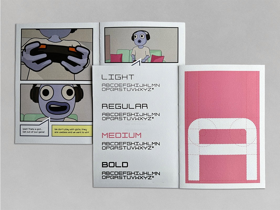 As part of the campaign, I designed a unique monospace typeface that resembles fonts used in older retro games. It embodies the values of fairness, equality, and respect through its equal spacing and line widths, this serves as a representation of the campaign’s mission to promote positive interactions in online gaming communities. Additionally, I created a type specimen book to present my typeface and to demonstrate its effectiveness when put into practice.
