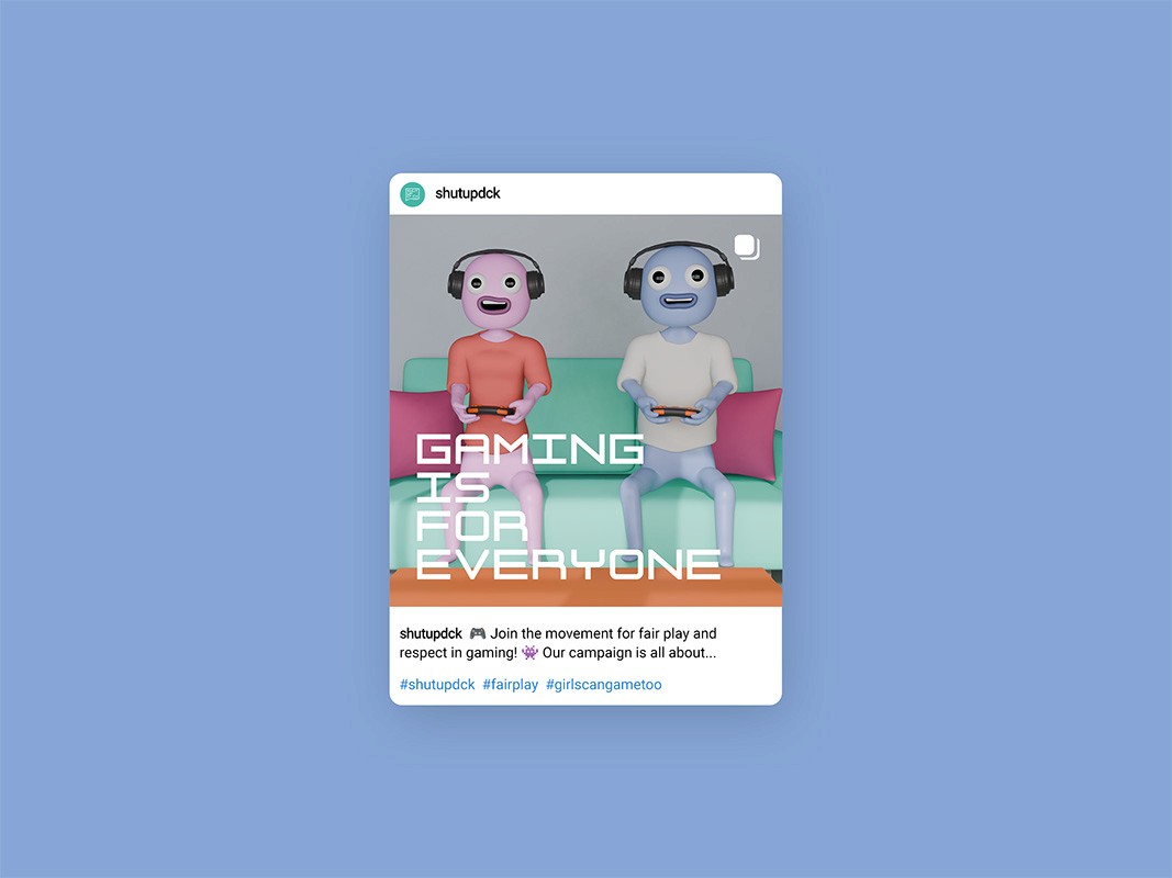 This campaign endeavours to change the minds of young male gamers using emotion and humour, creating a more inclusive and fun experience for female gamers. The positive impact on the gaming community will also inspire a less sexualised representation of female characters in video games.